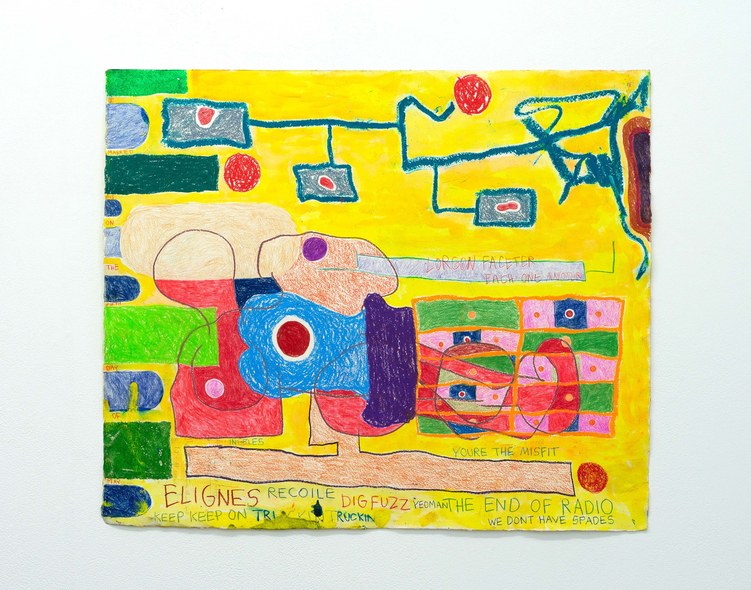 Drawing is central to Webster’s practice, a way of moving through ideas until something unfamiliar asserts itself. Created through sustained sequences, the works allow meaning to arise slowly through repetition, variation, and attention. Influenced by Philip Guston’s “peculiar miracle” of art making, Webster prioritises experience over explanation, producing drawings that are provisional yet inevitable. Language returns to Webster’s work after a long absence, appearing as lists, lyrics, and fragments drawn from music, poetry, film, and popular culture. Words function as material rather than message, valued for sound, rhythm, humour, and emotional charge. In other works, language disappears entirely, allowing silence and non-verbal intensity to dominate. Text emerges only when the drawing demands it.